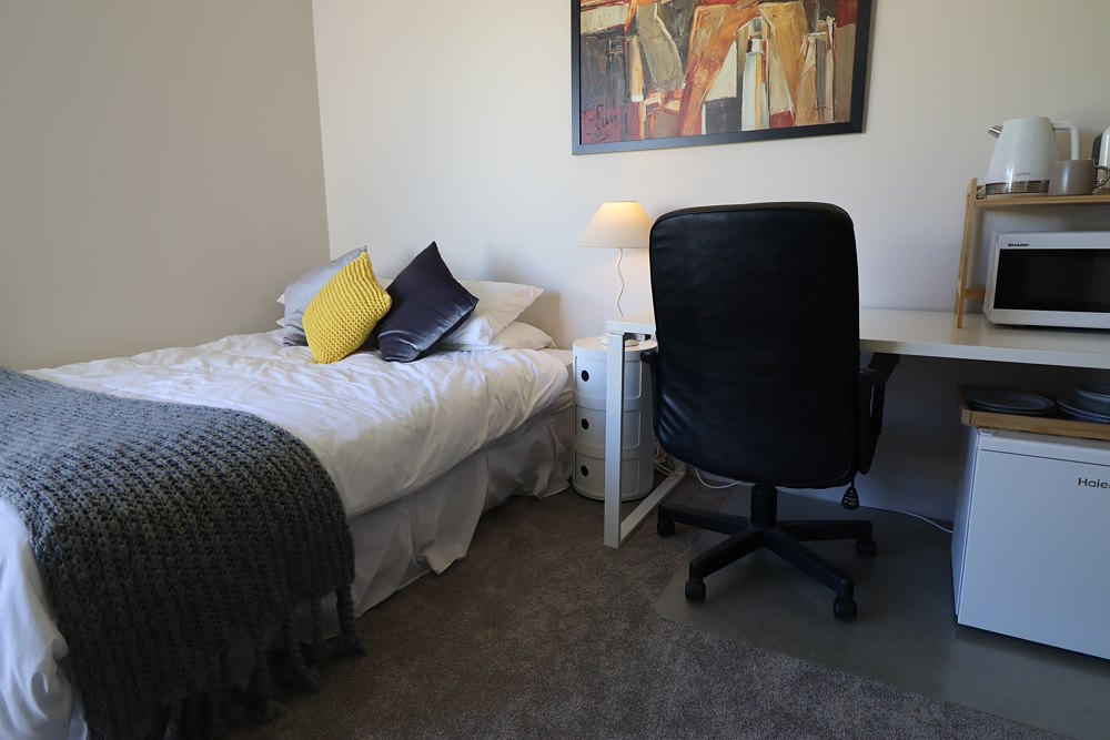 Large bedroom with queen bed (linen provided), self contained kitchenette in room (microwave, kettle, toaster and min bar fridge), and exclusive ensuite (towels included) . Shared toilet daytime.
